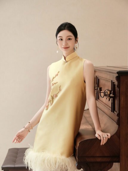 • Sheng Tang Peony | Black melon, orchid, bamboo and chrysanthemum patterned crepe short-sleeved cheongsam dress Sheng Tang Peony | Black melon, orchid, bamboo and chrysanthemum patterned crepe short-sleeved cheongsam dress $426.00