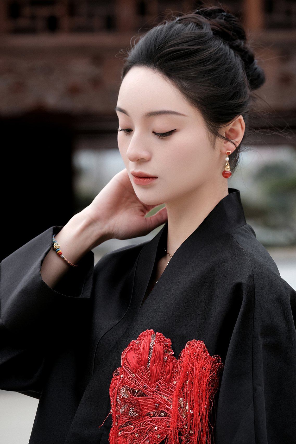 The French-embroidered hibiscus (Hibiscus Rosa-Sinensis, known in Chinese as Zhujin or Fusang) motif celebrates a flower long cherished in East Asian art and poetry. Symbolizing delicate beauty, enduring grace, and cultured appreciation, each embroidered bloom is a contemporary homage to classical literati aesthetics, executed with European haute couture craftsmanship.