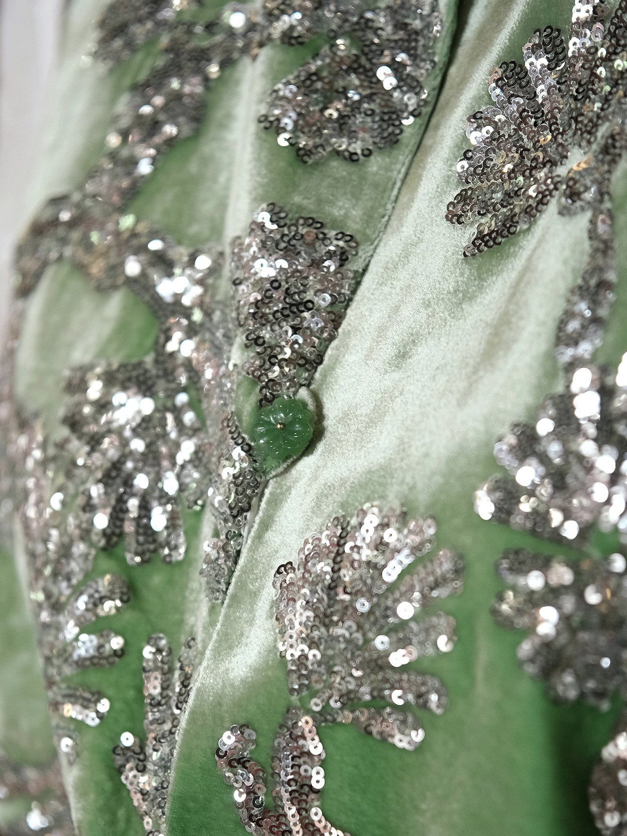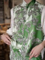 Sheng Tang Peony | Beaded Silver Pine Embroidery Silk Velvet Vest