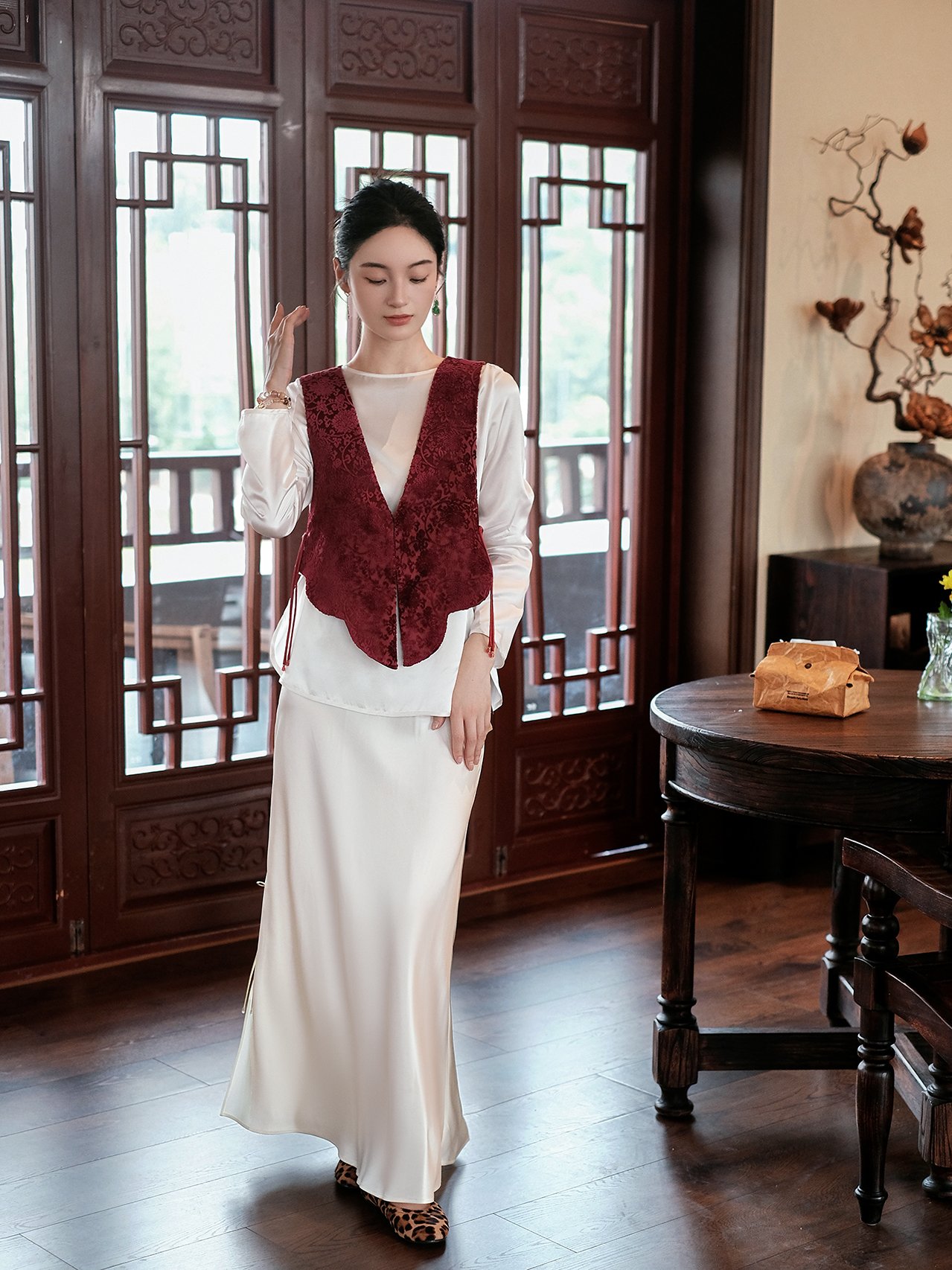 Sheng Tang Peony | Peony with Branches Silk Zang Rong Vest