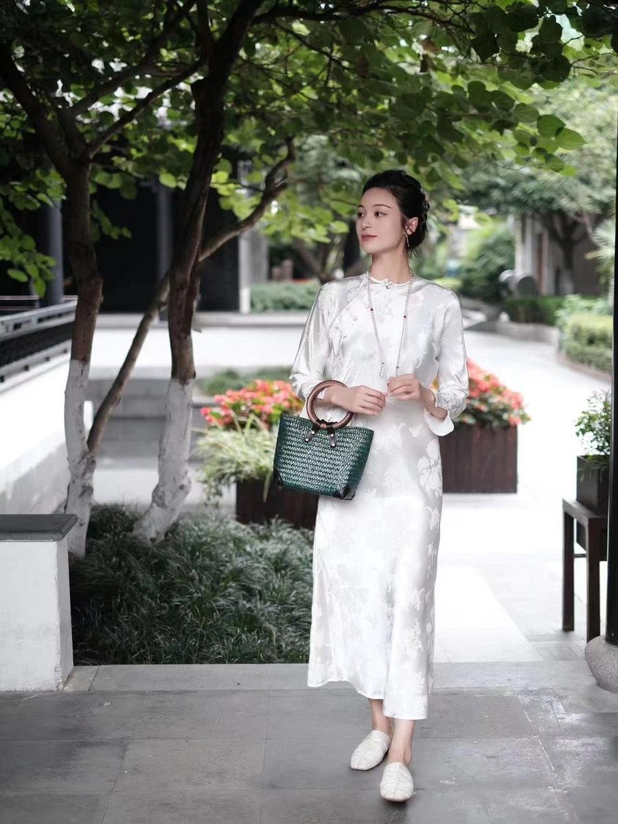 Sheng Tang Peony | Silk Cheongsam with ‘Four Gentlemen’ Embroidery & Diagonal Closure