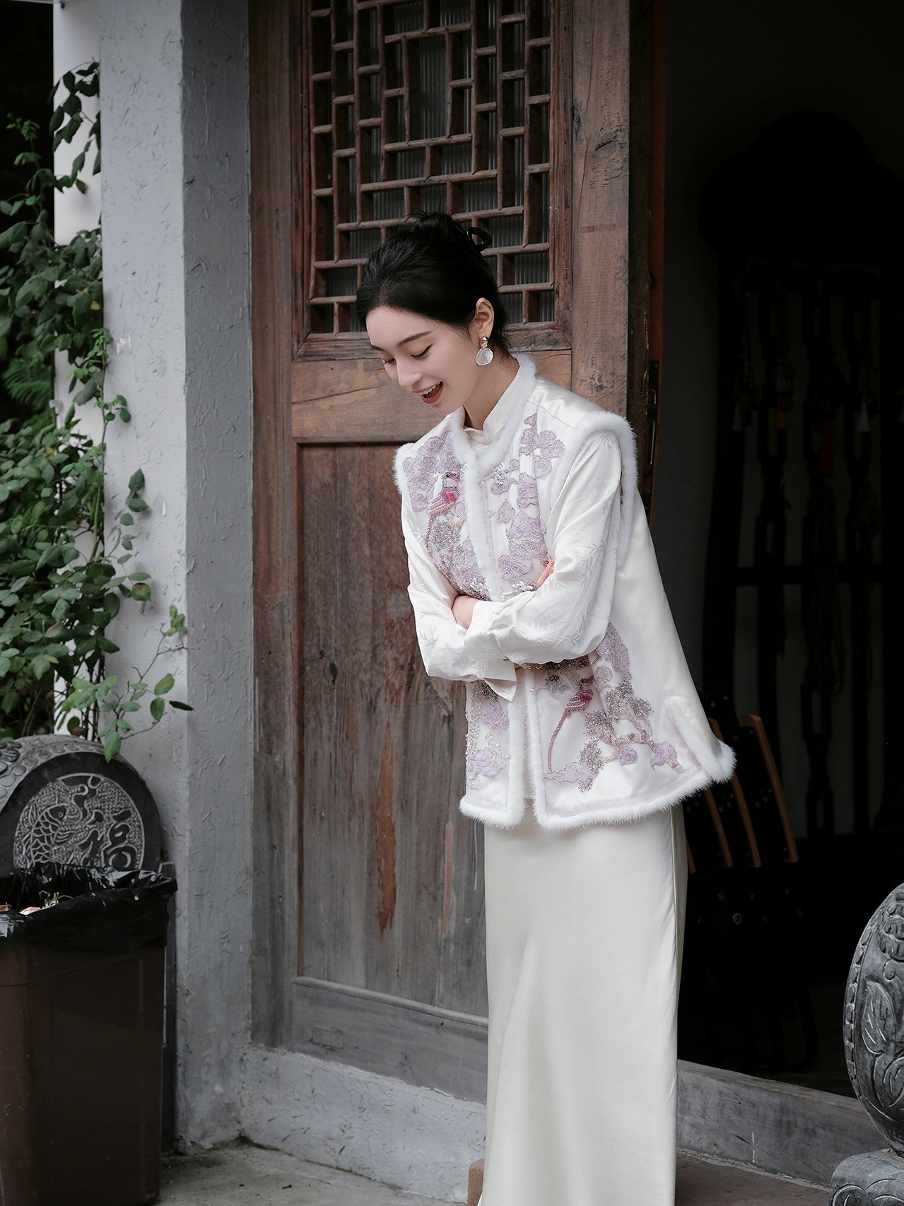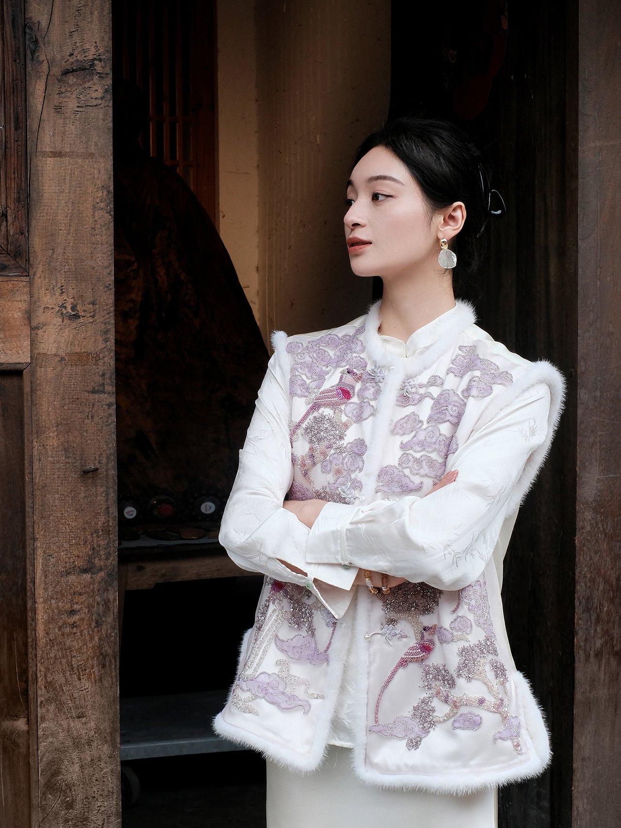 Splendors of the Golden Tang | Hand-beaded ‘Pine, Cloud & Phoenix’ Quilted Vest